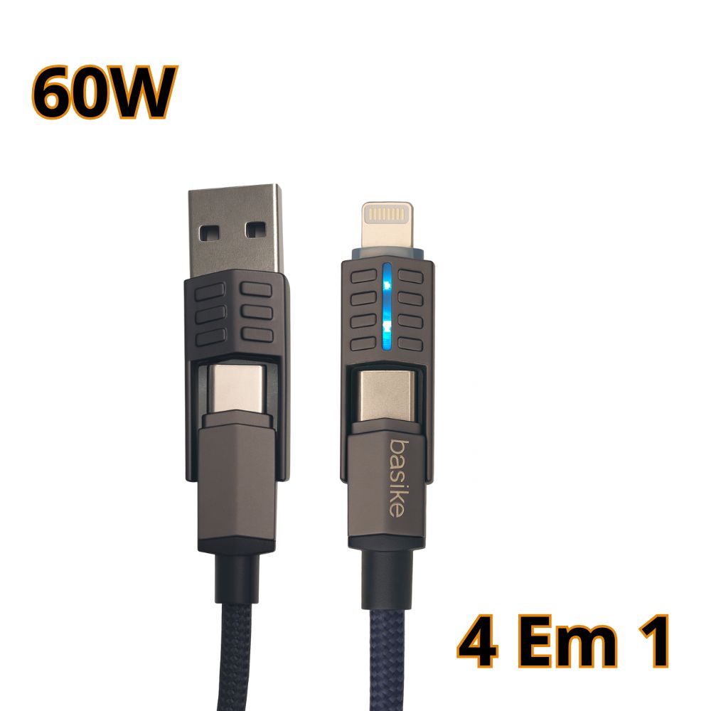 Cabo Basike 4 em 1- USB/USB-C/Lightning/Type C- 60W - 1,2 Metro - Ba-CBO350