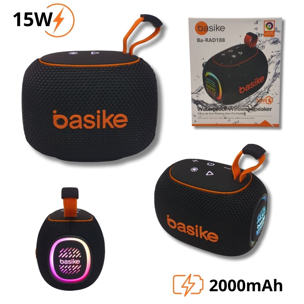 A Caixa de Som Portátil Basike Ba-RAD188 foi desenvolvida para quem procura potência sonora, autonomia e resistência em um único produto. Com 15W de potência, ela entrega um som forte, claro e bem equilibrado, ideal para animar qualquer ambiente, seja em casa ou ao ar livre.