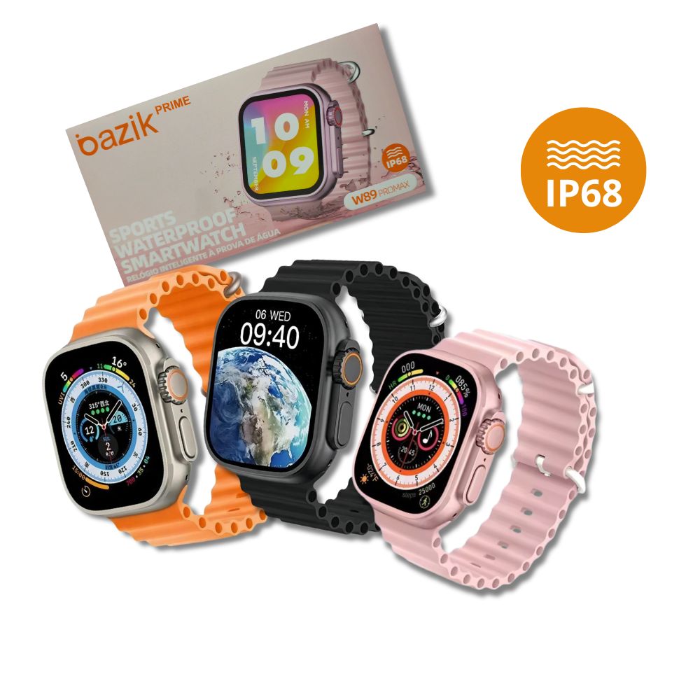 Disponível nas cores Preto, Laranja e Rosa, o Bazik W89 Pro Max é o smartwatch ideal para quem busca tecnologia, desempenho e estilo em um só dispositivo.